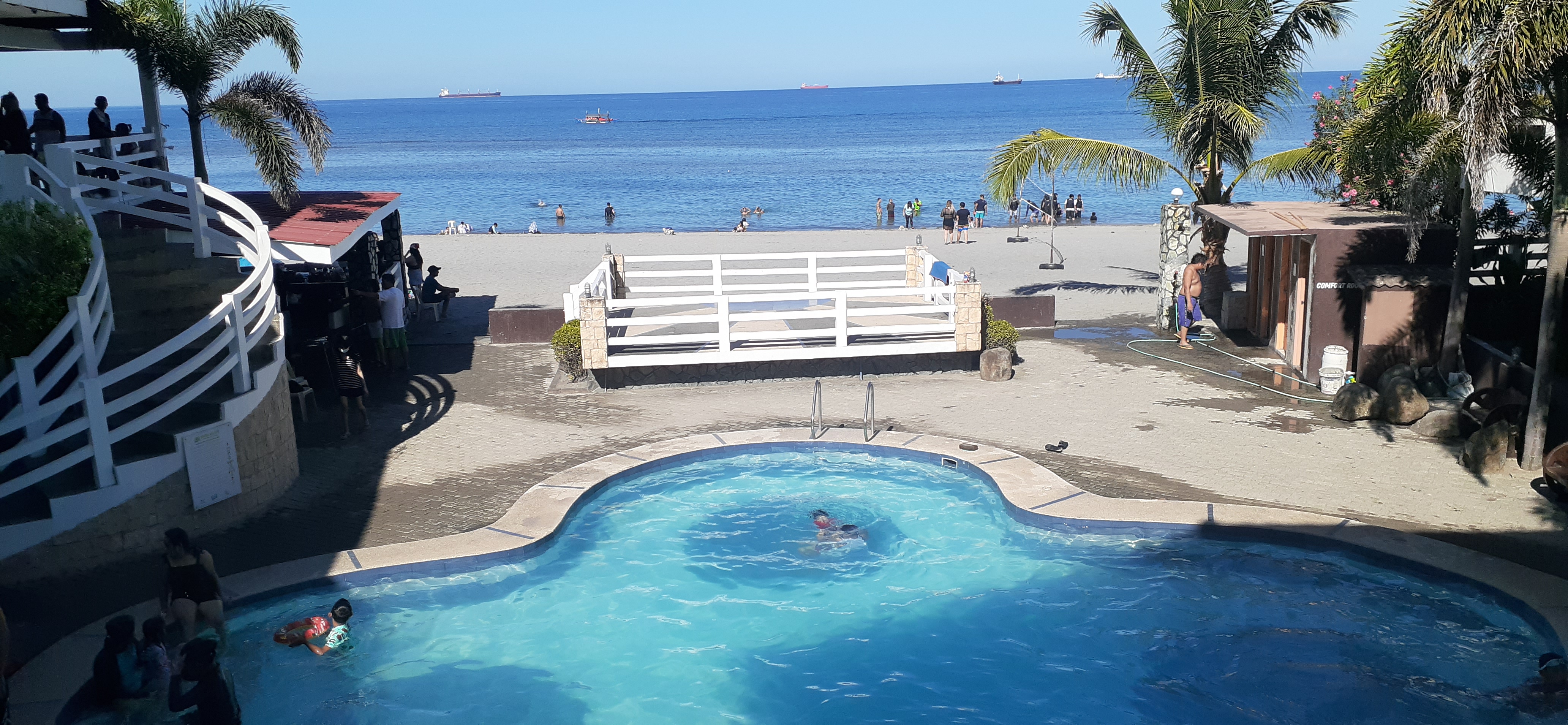 Due to favorable location of our resort and as it is bounded by a kilometer-stretch natural breakwater and barrier-island, swimming in our beach is a wonderful experience because it is compensated by safety, relaxation and recreation. A shallow body of water within our beach is instinctively formed and it is separated from open sea by coral reefs and white sandbars which act as breakwater. This natural slope transforms heavy waves into gentle splashing, thus, providing a safe and efficient means of protection. Hence, as safety is our main concern, we ask the cooperation of our guests to observe and obey the Resort's Beach Rules & Regulations.